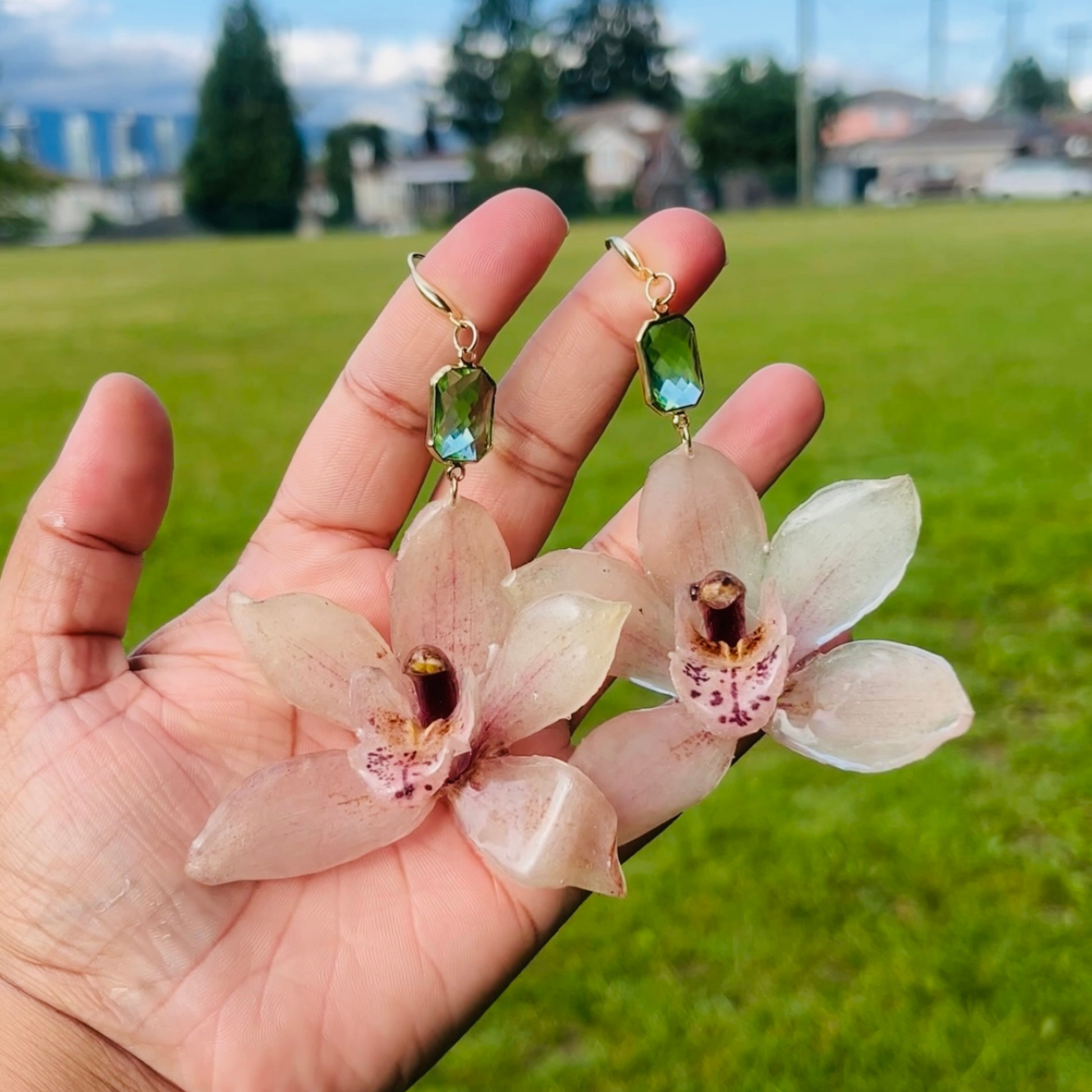Real Cymbidium Orchid Earrings made with high quality resin and gold filled hooks - Hypoallergenic, Nickel and Lead free