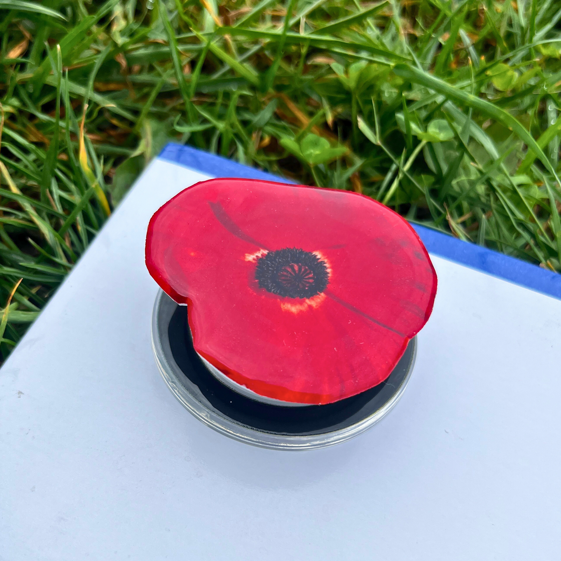 Elevate your everyday phone grip with this handcrafted pop socket featuring poppy flower (not real flower)ppy