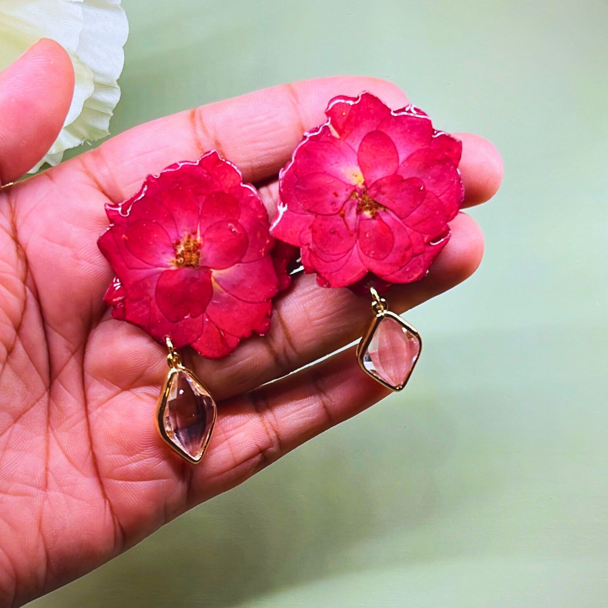 Pressed Red Rose preserved in resin perfect for bridal jewelry, gifts or a delightful treat for yourself