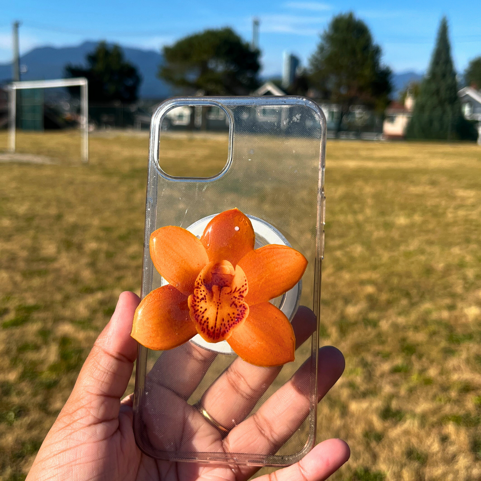 Elevate your everyday phone grip with this handcrafted pop socket featuring orchid flower (not real flower)